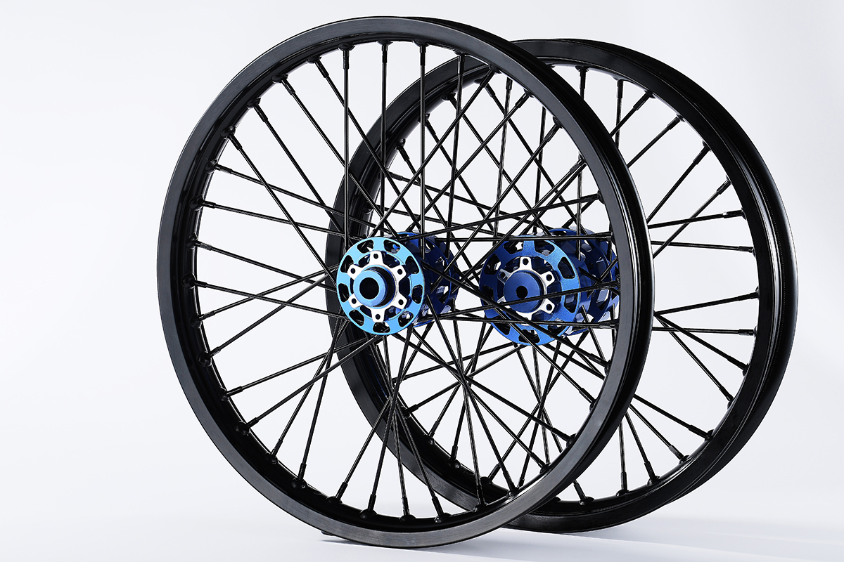 产品名称:竞技轮辋总成 车圈:材质:7116AL T6,前轮:19*2.15"http://后轮:18*2.5",高强度铝制轮圈 花鼓:材质:6061AL T6,前鼓芯:M20*9G*36H//后鼓芯:M20*9G*36H。锻造花鼓 辐条:材质:7075AL T6全铝辐条