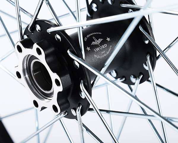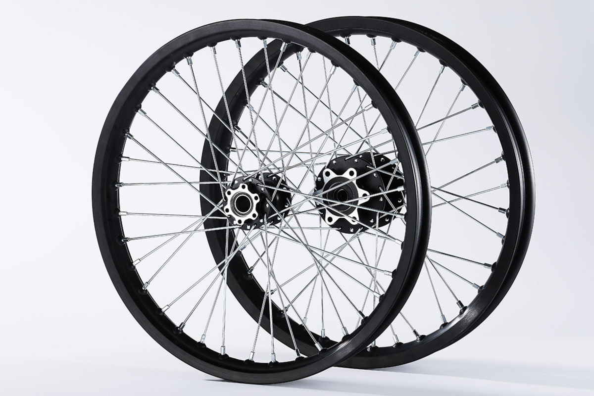产品名称:竞技轮辋总成 车圈:材质:7116AL T6,前轮:17*1.6"http://后轮:17*2.15",高强度铝制轮圈 花鼓:材质:6061AL T6,前鼓芯:M20*12G*36H//后鼓芯:M15*12G*36H。锻造花鼓 辐条:材质:65MN,过盐雾测试,防氧化涂层 适配车型:探骊毒刺5.0