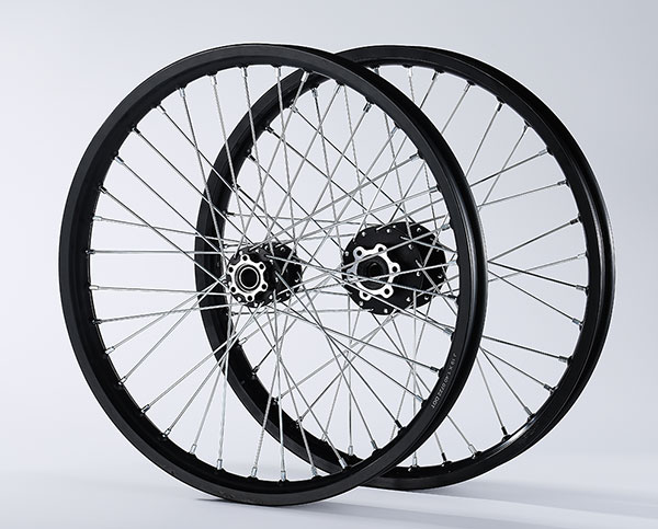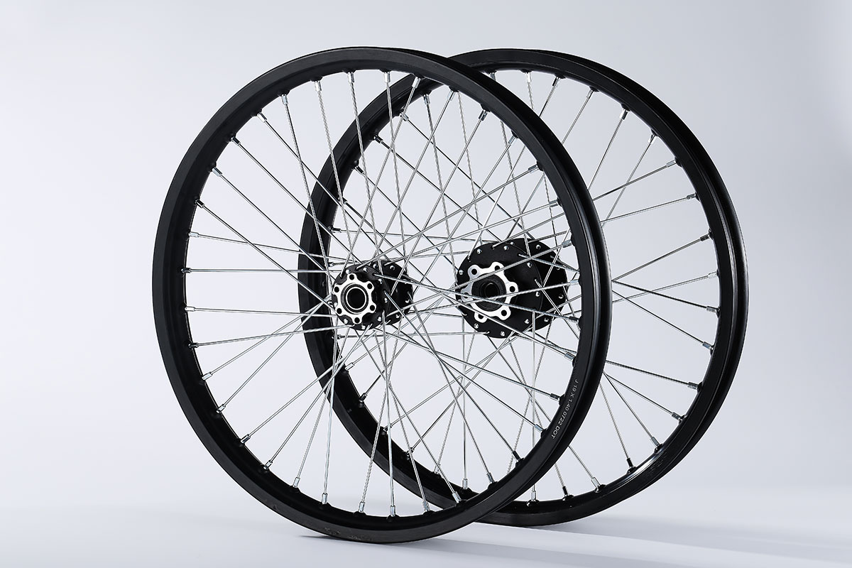 产品名称:双碟刹竞技轮辋总成 车圈:材质:7116AL T6,前轮:19*1.4"http://后轮:19*1.6",高强度铝制轮圈 花鼓:材质:6061AL T6,前鼓芯:M20*12G*36H(双碟刹设计)//后鼓芯:M15*12G*36H。锻造花鼓 辐条:材质:65MN,过盐雾测试,防氧化涂层 适配车型:虬龙轻蜂(日规)